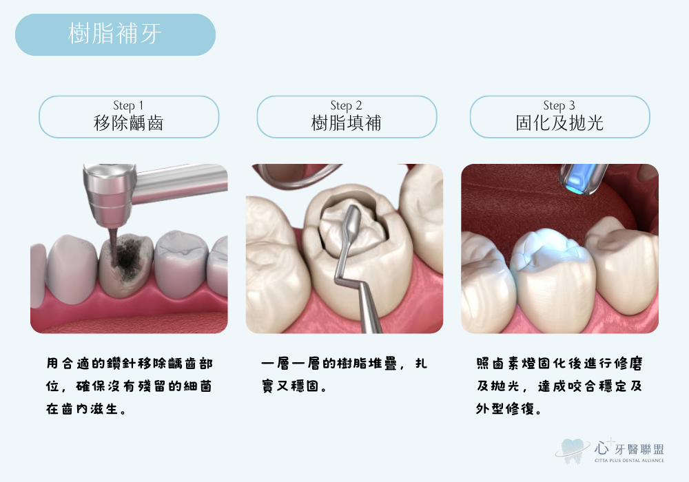 齲齒就是蛀牙的意思,當齲齒在一定程度內,可以僅透過複合樹脂材料進行填補,前提是填補後不會影響牙齒的功能性。