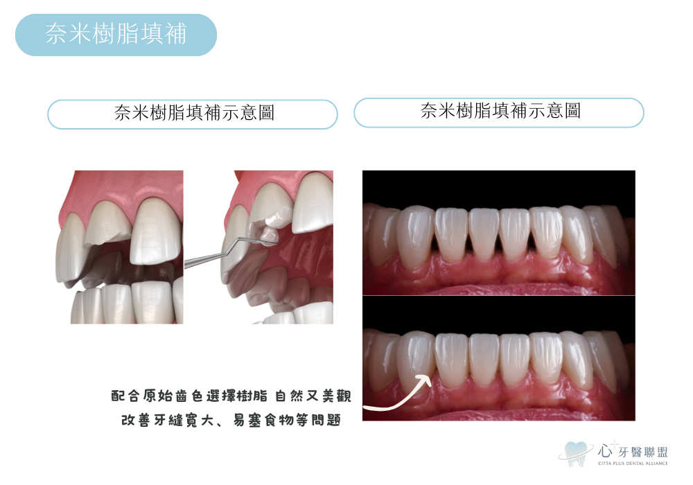 能有效填補牙縫,改善牙齦萎縮或矯正後的黑三角問題,恢復美觀。